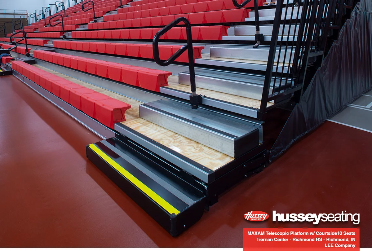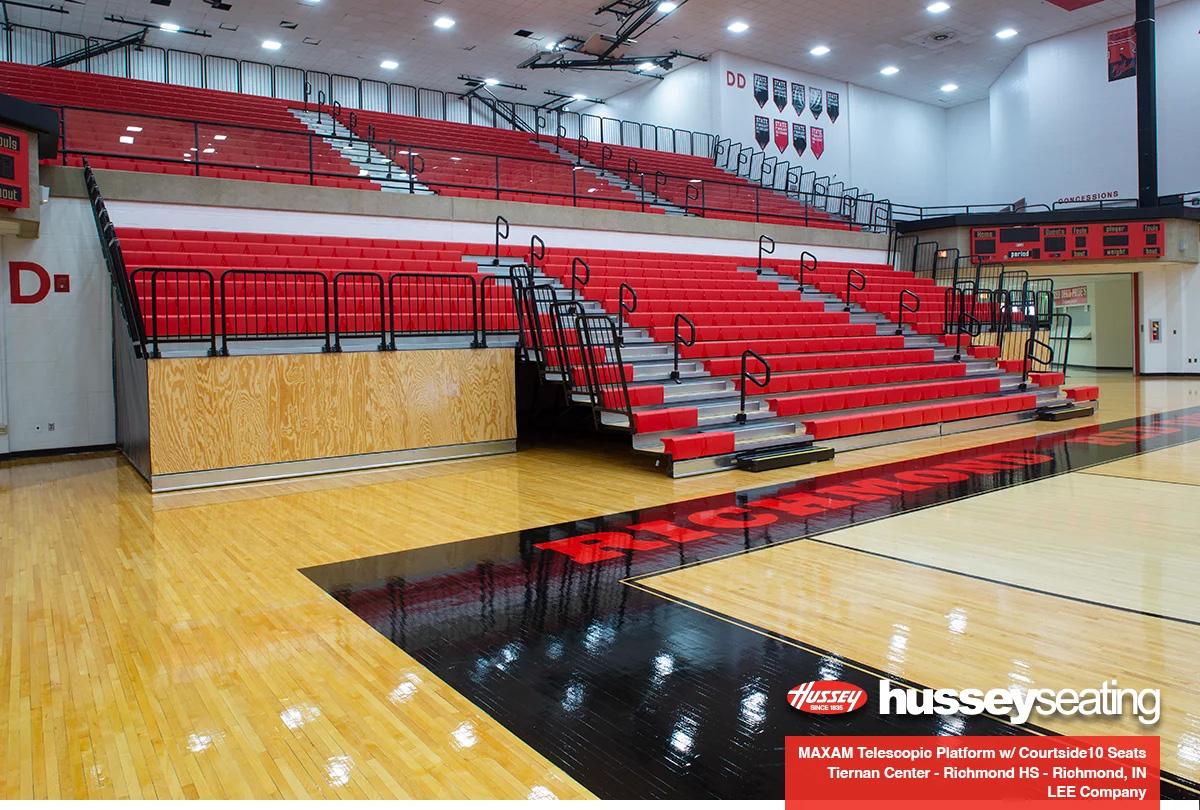 The collaboration with Hussey Seating Company resulted in a gymnasium transformation that has greatly benefited Richmond High School. The MAXAM telescopic platform, with its Sure Step feature, enhanced both the comfort and safety of spectators. While the reverse-fold design maximized available space, allowing the school to use its gymnasium seating more flexibly. Richmond High can now reconfigure seating for events or clear space for indoor track access as needed.
