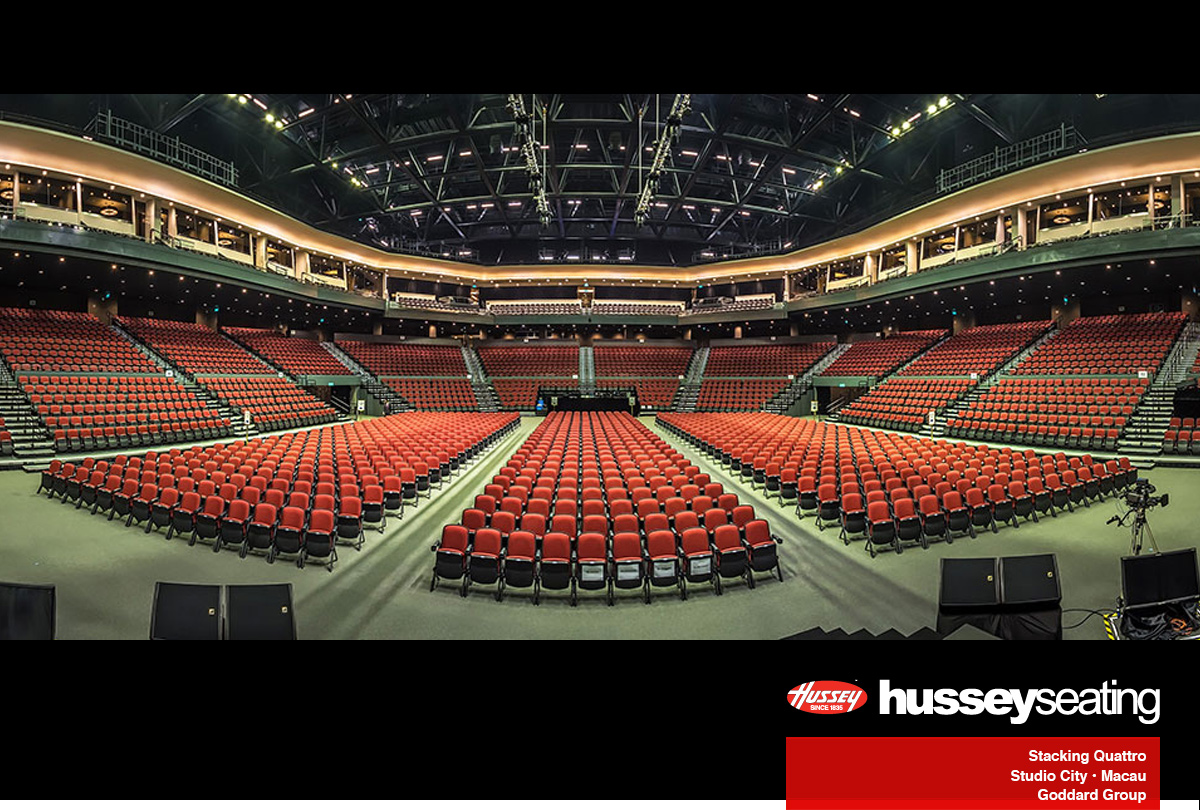 Studio City Event Center, located within one of the world's largest and most luxurious integrated entertainment resorts, Studio City, Macau. It is renowned for offering unparalleled experiences to its visitors. To maintain its status as a top-tier venue for entertainment, Studio City Event Center sought to upgrade its arena seating and convention center seating. This upgrade aimed to enhance comfort, flexibility, and the overall guest experience across multiple venues within the resort. Studio City partnered with Hussey Seating Company. Hussey provided premium seating solutions that would meet the diverse needs of their high-profile events.